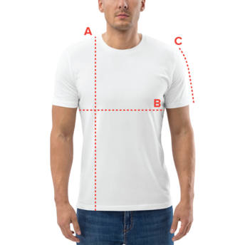 Place the end of the tape beside the collar at the top of the tee (Highest Point Shoulder). Pull the tape measure to the bottom of the shirt.